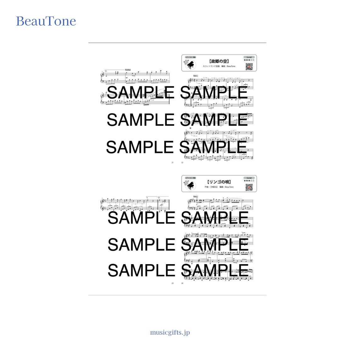 ピアニスト・音楽療法士BeauToneが日頃行う、高齢者を対象にコンサートでの演奏のために書き下ろした楽譜で歌いやすく・優雅で華やか・演奏しやすいアレンジをコンセプトにしています。