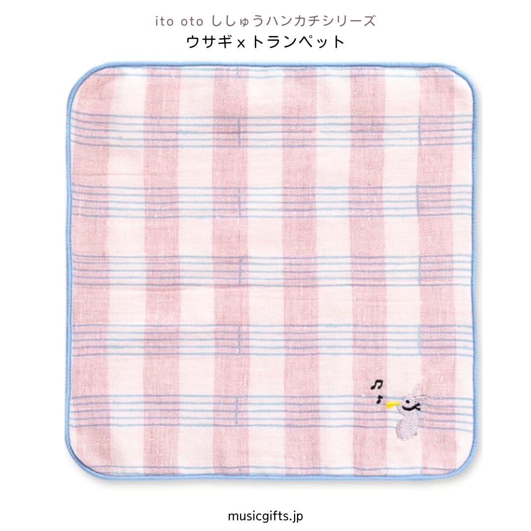 ito oto ししゅうハンカチ ウサギxトランペット