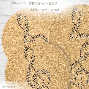 クラヴサン 木製コースター4枚組 音符で紡いだト音記号