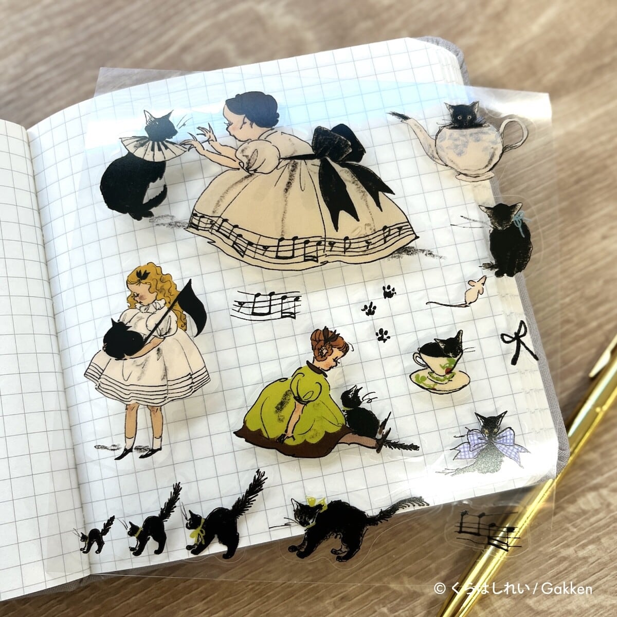 くらはしれいさんの繊細なタッチで描かれた猫や少女たちが、そっと日常に寄り添う、透明タイプのシールです。