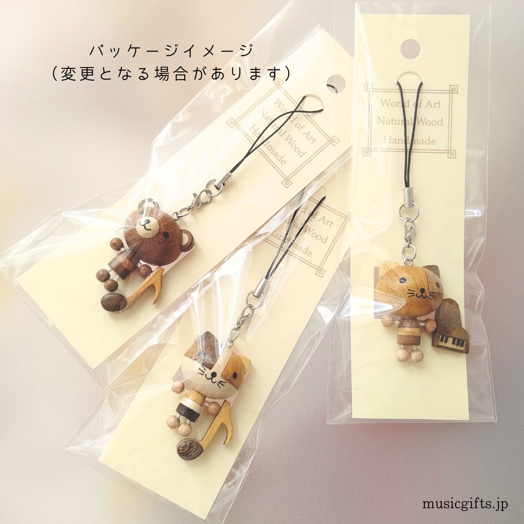 音符ねこ 動物と楽器の木製ストラップ