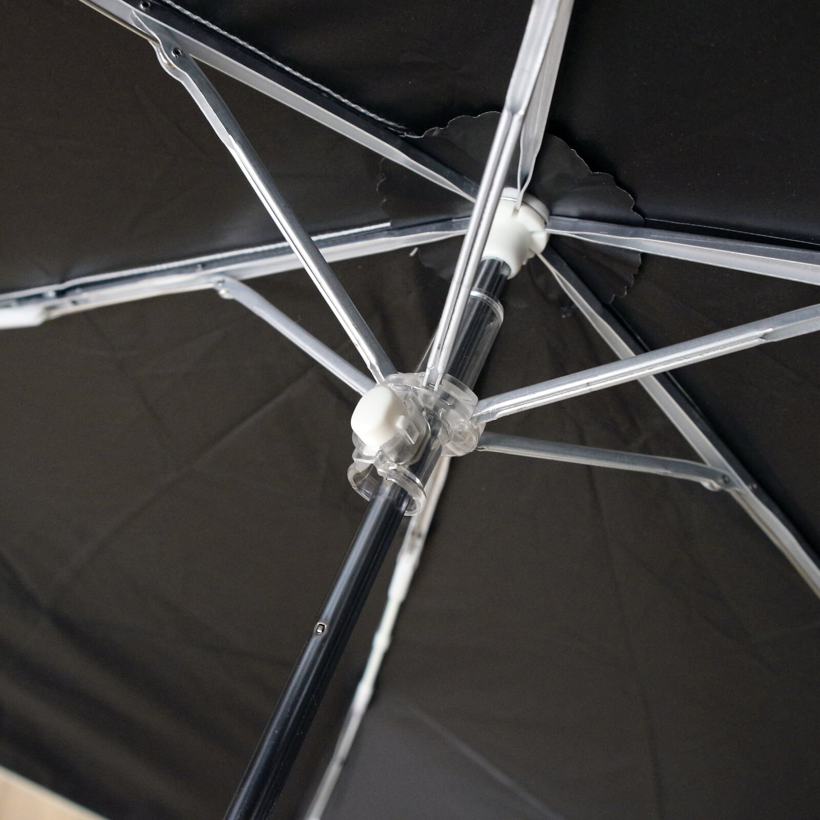 生地裏面に黒のポリウレタンコーティング加工を施しており、遮光&紫外線遮蔽率&遮熱効果に優れた(※)機能性パラソル。