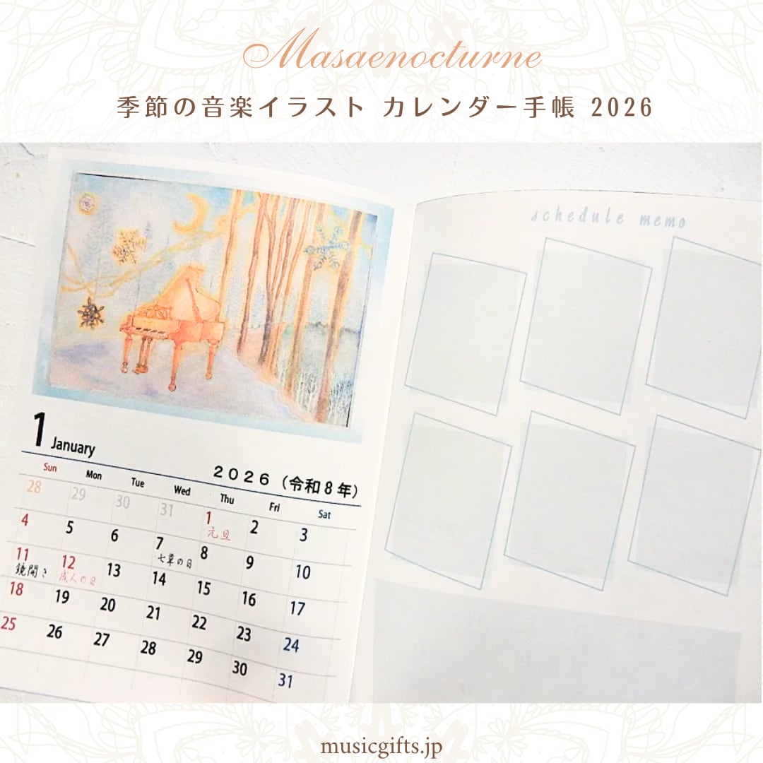 Masaenocturne 季節の音楽イラスト カレンダー手帳 2026